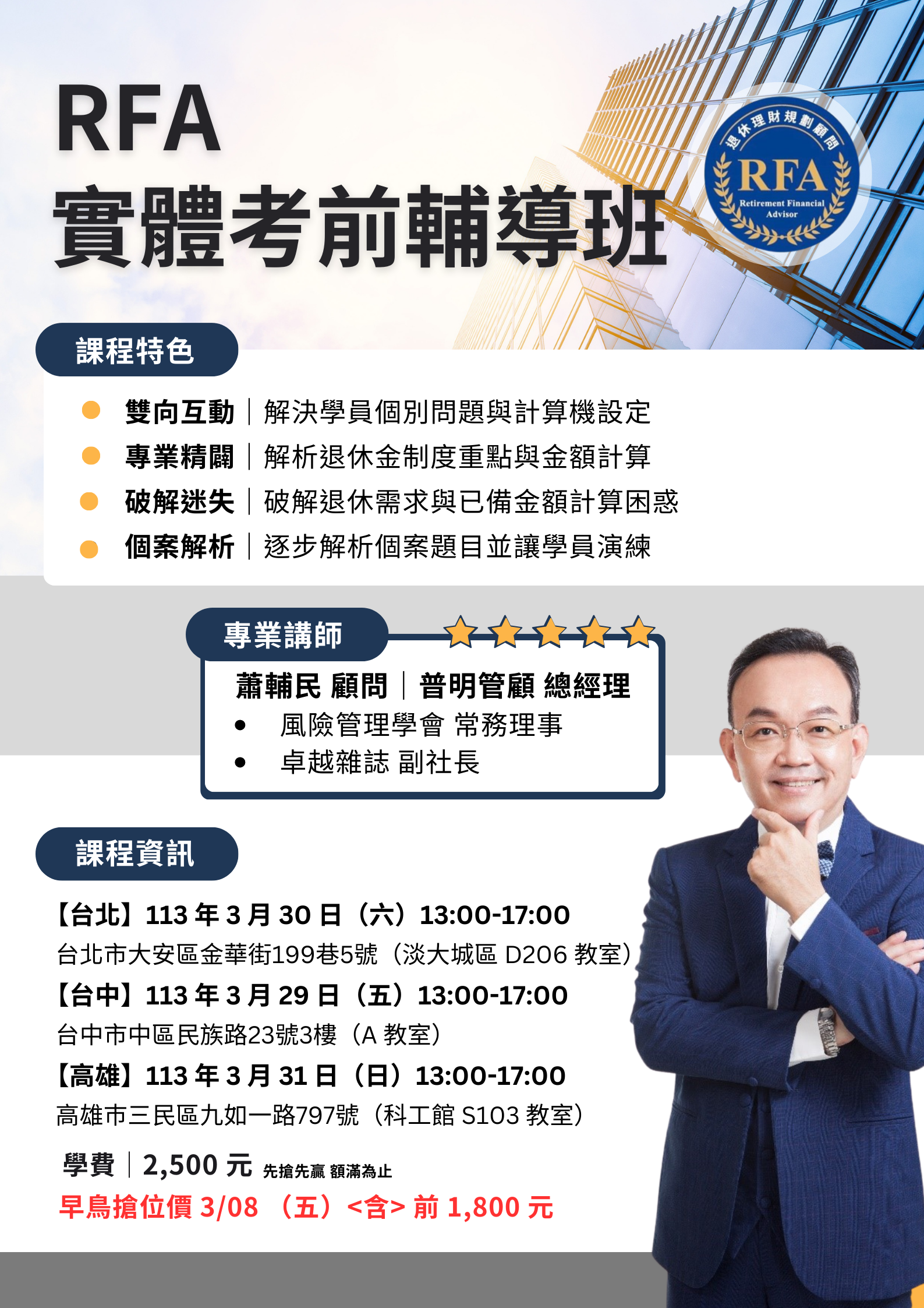 - 主辦單位保留最後開課權利,若因報名人數不足未能開班,將全額退費。