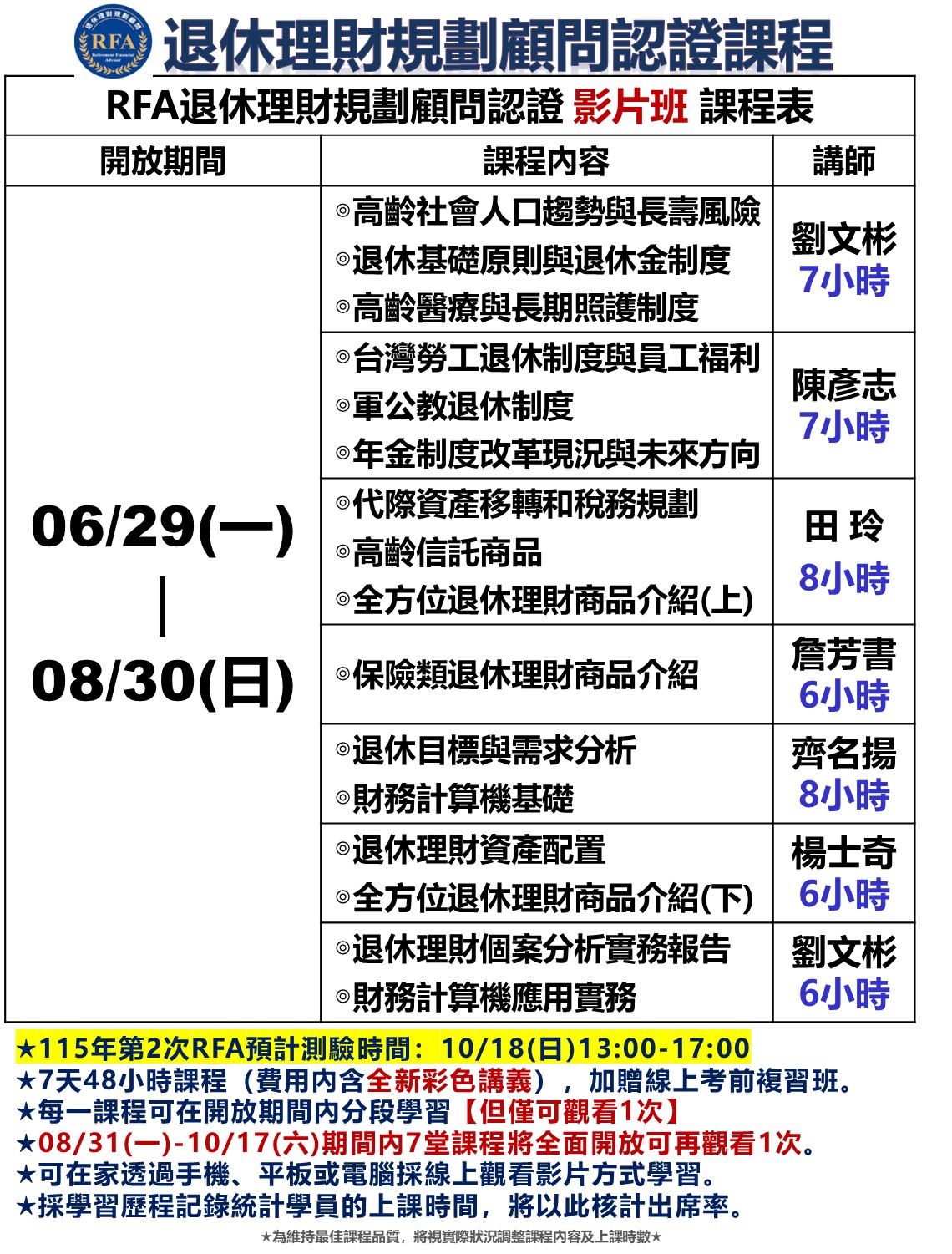• 【RFA退休理財規劃認證課程】超強師資陣容千萬不要錯過~